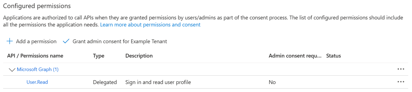 - On API permissions page Grant admin consent for the User.Read permission.