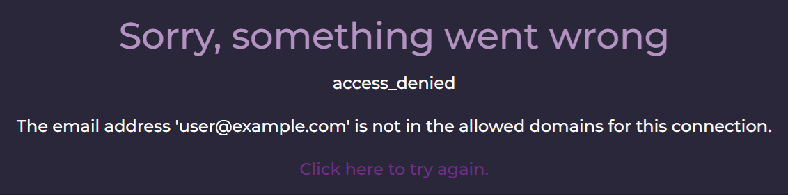 The email address is not in the allowed domains for this connection