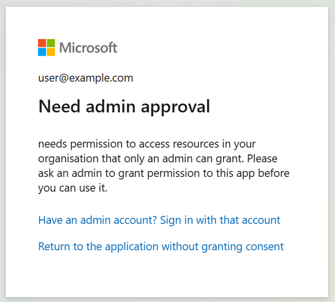 This happens when admin consent is not granted in Microsoft Entra ID. On the API permissions page for the App Registration in Microsoft Entra ID Grant admin consent for the User.Read permission.
