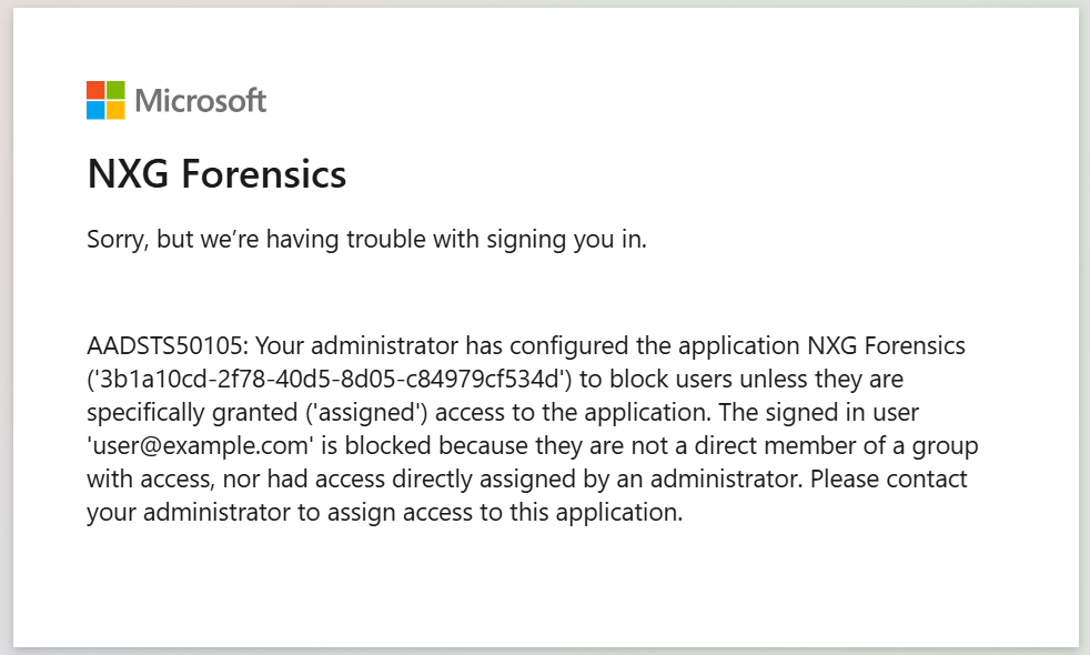 AADSTS50105: Your administrator has configured the application to block users