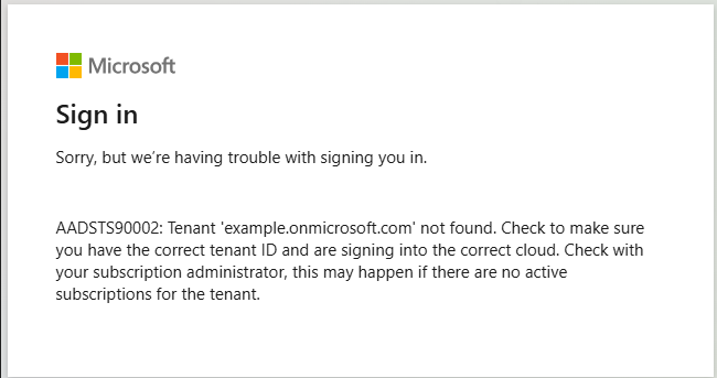 AADSTS90002: Tenant not found