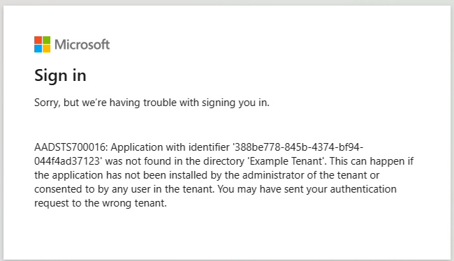 AADSTS700016: Application with identifier was not found
